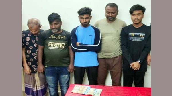আটককৃতরা হলেন, মো. জিসান আহমেদ (২০), মো. বাবর আলী (৩২), ইমন আহমেদ (২০), মো: দেলোয়ার হোসেন (৩০) ও কৃতিশ দে (৫৫)।