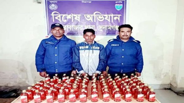 দোয়ারাবাজার (সুনামগঞ্জ) প্রতিনিধি:- সুনামগঞ্জের দোয়ারাবাজারে ভারতীয় মদের চালানসহ সোনাফর আলী (২৩) নামের এক যুবককে আটক করেছে দোয়ারাবাজার থানা পুলিশ।