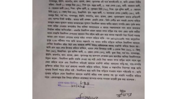 প্রথম সকাল ডেস্ক:- প্রবাসীর স্ত্রী সুফিয়া বেগমকে নিজ বসতভিটা থেকে উচ্ছেদ করার ষড়যন্ত্রের অভিযোগ উঠেছে। সুনামগঞ্জ জেলার ছাতক থানায় এ বিষয়ে একটি সাধারণ ডায়েরি (জিডি নং-৮২৪) দায়ের করেছেন সুফিয়া বেগম।
