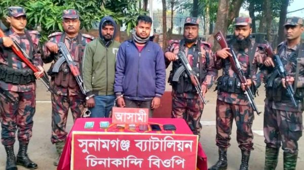 সুনামগঞ্জ বিজিবি ব্যাটালিয়ন-২৮ এর অফিসার লে. কর্ণেল একেএম জাকারিয়া কাদির তথ্য নিশ্চিত করে বলেন, চোরাচালানের উদ্দেশে অবৈধভাবে ভারতে প্রবেশকালে দুই বাংলাদেশিকে আটক করা হয়।