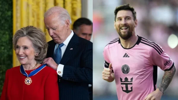 প্রথম সকাল ডেস্ক:- যুক্তরাষ্ট্রের সর্বোচ্চ বেসামরিক সম্মাননা প্রেসিডেনশিয়াল মেডেল অব ফ্রিডম তুলে দিলেন প্রেসিডেন্ট জো বাইডেন। বিভিন্ন ক্ষেত্রে অনন্য অবদানের জন্য হিলারি ক্লিনটন, জর্জ সরোস, ড্যানজেল ওয়াশিংটন, লিওনেল মেসিসহ ১৯ জন বিখ্যাত ব্যক্তিকে এ সম্মাননা দেয়া হয়।