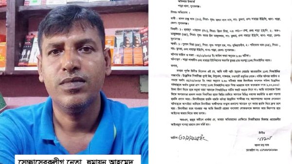 অভিযুক্ত ব্যক্তিরা হলেন স্বেচ্ছাসেবকলীগ নেতা সহদেব পাশা গ্রামের হুমায়ুন আহমেদ ও ডুমরা গ্রামের অরুপ তালুকদার। লিখিত অভিযোগে বাদল চন্দ্র দাশ উল্লেখ করেন, তিনি পানি উন্নয়ন বোর্ডের আওতাধীন ১১নং পিআইসির সভাপতি।