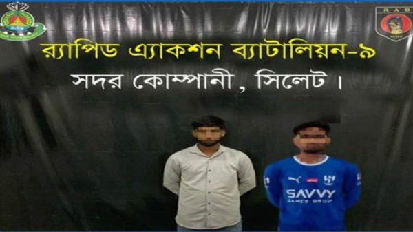 গ্রেফতারকৃতরা হলেন, সিলেটের কানাইঘাটের পূর্ব কাড়াবাল্লা গ্রামের মো. আব্দুল মজিদের ছেলে মো. নাজমুল হোসেন ওরফে রায়হান (২০) সুনামগঞ্জের ধর্মপাশা থানার রাজাপুর গ্রামের গোলাম কিবরিয়ার ছেলে রাজু আহমদ (১৮) ।