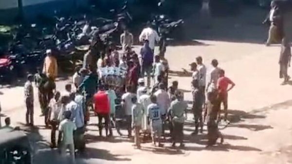 গতকাল সোমবার সুনামগঞ্জ চিফ জুডিসিয়াল আদালত প্রাঙ্গণের সামনে থেকে থাকে তুলে নেওয়া হয়।