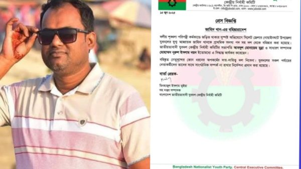 সিলেটের গোয়াইনঘাট উপজেলা যুবদলের যুগ্ম আহ্বায়ক জাহিদ খানকে বহিষ্কার করা হয়েছে। রোববার (১৫ জুন) যুবদলের কেন্দ্রীয় কমিটির সহদপ্তর সম্পাদক মিনহাজুল ইসলাম ভূঁইয়া স্বাক্ষরিত বিজ্ঞপ্তিতে এ তথ্য জানানো হয়। বিজ্ঞপ্তিতে বলা