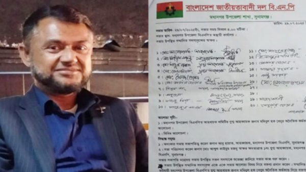 সুনামগঞ্জ জেলার মধ্যনগর উপজেলা নবগঠিত বিএনপির ২১ সদস্যবিশিষ্ট আহ্বায়ক কমিটির মধ্যে ১৮ জনের সাক্ষরিত রেজোলিউশনে সিদ্ধান্ত নেওয়া হয়েছে, যুগ্ম আহ্বায়ক মমিনুল হক বেনু মাদকদ্রব্য চোরাকারবারি ও চাঁদাবাজির সাথে জড়িত