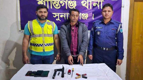 শান্তিগঞ্জ (সুনামগঞ্জ) প্রতিনিধি:- পুলিশের বিশেষ অভিযানে আগ্নেয়াস্ত্রসহ আন্তজেলা ডাকাতদলের সর্দার মর্তুজ আলীকে (৩৮) গ্রেফতার করা হয়েছে। রোববার (২ মার্চ) সন্ধ্যায় সুনামগঞ্জের শান্তিগঞ্জে উপজেলার পাথারিয়া ইউনিয়নের গনিগঞ্জ বাজার থেকে তাকে গ্রেফতার