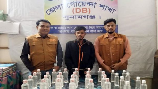 সনামগঞ্জ প্রতিনিধি:- সুনামগঞ্জে চোলাই মদসহ আব্দুল হাকিম (২৫) নামে মাদক কারবারি’কে আটক করেছে ডিবি পুলিশ। বৃহস্পতিবার বিকেলে কালীবাড়ি রোড এলাকার আলো জুয়েলার্সের সামনে থেকে আটক হন আব্দুল হাকিম। সুনামগঞ্জ জেলা