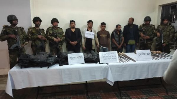 প্রথম সকাল ডেস্ক:- ছাতকে সেনা বাহিনীর অভিযানে বিপুল পরিমাণ দেশীয় অস্ত্র,সুরক্ষা সামগ্রী সহ ৪ ডাকাত ও তাদের বহনকারী একটি নোহা গাড়ি ও চালককে আটকে করা হয়েছে। বৃহস্পতিবার রাতে শহরের পেপার