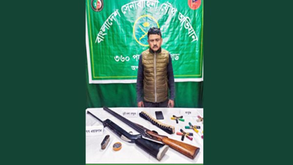 হবিগঞ্জ জেলার বানিয়াচংয়ে সেনাবাহিনী ও পুলিশের যৌথ অভিযানে দেশি-বিদেশি আগ্নেয়াস্ত্র এবং বিপুল পরিমাণ গোলাবারুদ উদ্ধারসহ তিন ব্যক্তিকে গ্রেপ্তার করা হয়েছে। রবিবার ২৫ জানুয়ারি রাতভর উপজেলার বিভিন্ন এলাকায় সাঁড়াশি অভিযান চালিয়ে
