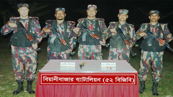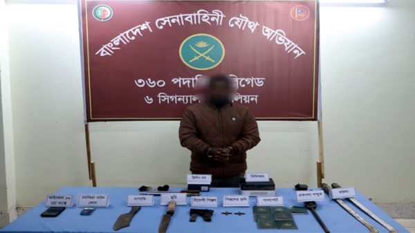 সুনামগঞ্জের দিরাইয়ে সেনাবাহিনীর যৌথ অভিযানে বিদেশি পিস্তল, একটি একনলা বন্দুক, ৮ রাউন্ড পিস্তলের গোলাবারুদ, বেশকিছু পাসপোর্ট ও দেশীয় ধারালো অস্ত্র সহ একজন শীর্ষ সন্ত্রাসীকে আটক করার খবর পাওয়া গেছে। ২৩