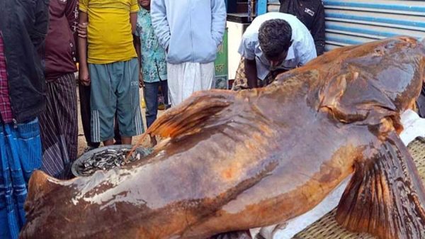 সিলেটের বিশ্বনাথে পীরের বাজারে মাছের মেলায় তোলা একটি বিশাল আকারের বাঘাইড় মাছের দাম হাঁকা হয়েছে ২ লাখ ৬০ হাজার টাকা। ৬০-৬৫ কেজি ওজনের বিপন্ন এ মাছটি শেরপুরের কুশিয়ারা নদী থেকে