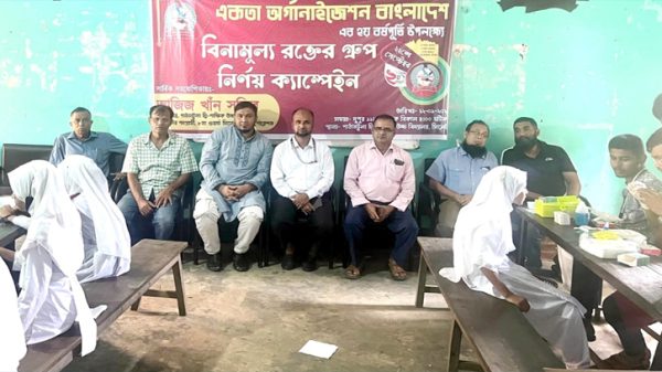 একতা অর্গানাইজেশন বাংলাদেশ এর ২য় বর্ষপূর্তি ও বিদ্যালয়ের প্রাক্তণ শিক্ষার্থী, মহানগর স্বেচ্ছাসেবক দলের যুগ্ম আহ্বায়ক ও ৮নং ওয়ার্ডের কাউন্সিলর পদপ্রার্থী আজিজ খান সজিব এর সহযোগিতায় ফ্রি রক্তের গ্রুপ নির্ণয় ক্যাম্পেইন-২০২৫