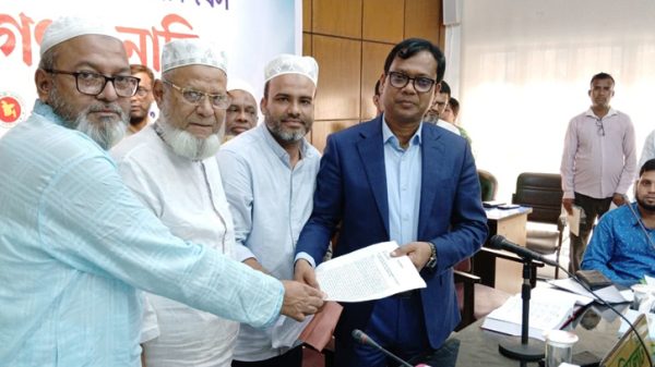 সিলেটের কাজির বাজার সেতুর উভয় পার্শ্বের রাস্তা প্রশস্তকরণ, শেখ ছানা উল্লাহ জামে মসজিদের সামন সহ চতুরদিকের সড়কের স্পিড ব্রেকার ও প্রস্তাবিত শাহজালাল (রহ:) চতুর নির্মাণের দাবীতে জেলা প্রশাসক মোঃ সারওয়ার