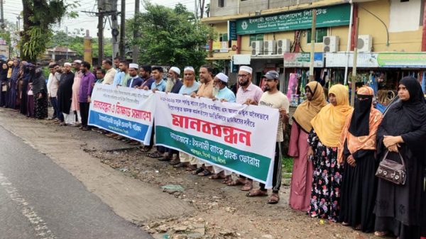 ইসলামী ব্যাংকে ২০১৭-২০২৪ সাল পর্যন্ত লুটপাট ও দুর্নীতির অভিযোগ তুলে এবং এস আলম গ্রুপের প্রভাব খাটিয়ে অবৈধভাবে নিয়োগকৃত অদক্ষ কর্মকর্তাদের অনতিবিলম্বে ছাঁটাইয়ের দাবিতে মানববন্ধন কর্মসূচি পালন করেছে ইসলামী ব্যাংক গ্রাহক