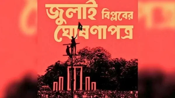 আগামী ৫ আগস্ট বিকাল ৫টায় গণঅভ্যুত্থানের সব পক্ষের উপস্থিতিতে জুলাই ঘোষণাপত্র জাতির সামনে উপস্থাপন করা হবে বলে জানিয়েছেন প্রধান উপদেষ্টার প্রেস সচিব শফিকুল আলম। শনিবার (২ আগস্ট) দুপুরে নিজের ভেরিফায়েড