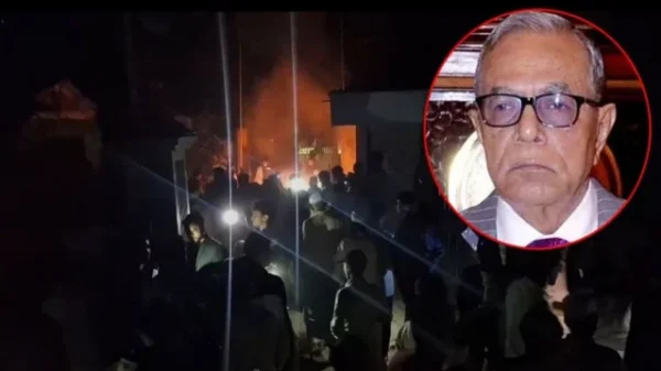 প্রথম সকাল ডেস্ক:- পতিত আওয়ামী সরকার আমলের সাবেক রাষ্ট্রপতি আবদুল হামিদের কিশোরগঞ্জ শহরের খরমপট্টি এলাকার বাসভবনে হামলা ও ভাঙচুর শেষে আগুন দিয়েছে বিক্ষুব্ধ ছাত্র-জনতা। বৃহস্পতিবার (৬ ফেব্রুয়ারি) রাত পৌনে ১১টার